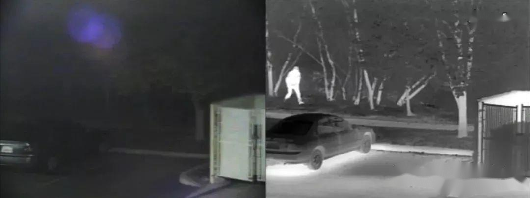 在黑暗環境下,熱成像使得遠處的人變得清晰可見