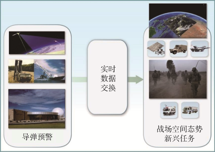 為了適應戰場空間態勢感知快速變化的挑戰,2016年,SBIRS團隊提出了一種基于開放系統架構(open system architecture,OSA)的模塊化、層次化、自適應的OPIR地面應用開發框架[17],支撐多任務、多傳感器的戰場態勢感知任務。SBIRS團隊認為OPIR的任務領域不斷擴大,對OPIR數據的擴張性需求和戰場空間態勢感知任務的動態特性正在推動地面處理系統進行重大變革,圖3展示了OPIR支持的導彈警告和不斷演變的任務域。