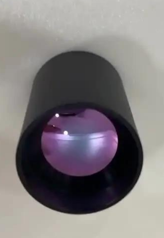 Ge(鍺)是一種常用的紅外鏡頭材料,具有硬度高、導熱性好等特點,光譜透射范圍為1.8–12μm,可適用于中波紅外和長波紅外探測,鍺是一種晶體材料,單晶鍺是一種相對于多晶鍺折射率更加均勻、更適用的紅外鏡頭材料。如下圖為鍺做材料的紅外鏡頭: