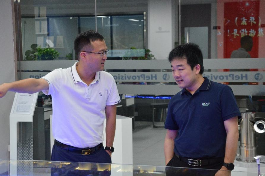 參觀中,中國石油大學(華東)安徽校友會會長陳衛東一行及化學化工學院副院長胡涵深入了解了公司未來發展方向、產品布局、技術迭代情況,以及應用場景方面的突破,尤其是在上游采油氣田和罐區氣體泄漏安全監測的應用落地情況,陳衛東會長一行和胡涵副院長對航譜時代在制冷型紅外領域的高度專業化和創新能力給予充分認可和贊揚。